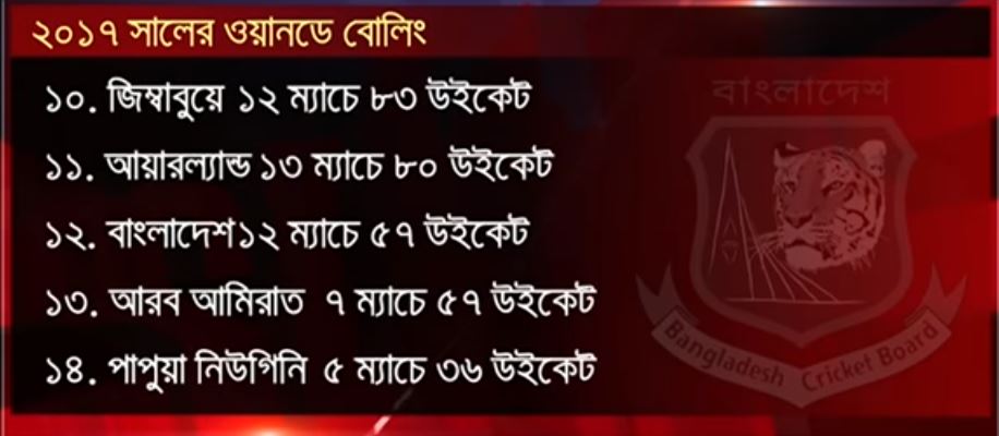 পুরো বছরের হিসাবটা আরও করুণ। ২০১৭ থেকে এখন পর্যন্ত ১২ ওয়ানডে খেলে বাংলাদেশের শিকার মাত্র ৫৭ উইকেট। যা প্রতিপক্ষের উইকেট নেয়ার তালিকায় ১২তম! এমনকি আরব আমিরাতের মতো দলও মাত্র ৭ ওয়ানডেতেই নিয়েছে ৫৭ উইকেট। সমান ১২ ম্যাচে জিম্বাবুয়ের শিকার ৮৩ আর ১ ম্যাচ বেশি খেলা আফগানিস্তান নিয়েছে ৯৪ উইকেট।