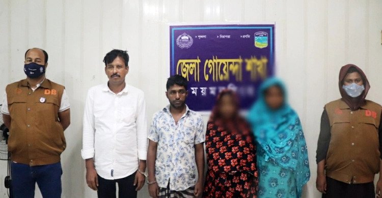 গ্রেফতাররা হলেন, ব্রাহ্মণবাড়িয়া জেলার নাসিরনগর উপজেলার বাসিন্দা মৃত সানু মিয়ার ছেলে জাহাঙ্গীর মিয়া (৩৫), হাছন আলীর ছেলে মো. আরাফত আলী ওরফে কাপ্তান (৫০), মুর্শিদ কামালের স্ত্রী মোছা. ছাহেরা খাতুন (৪০) ও রঙ্গু মিয়ার স্ত্রী মোছা. নারগিছ বেগম (৩৫)। এর আগে বুধবার রাত ১১ টার দিকে নগরীর বাঘামারা এলাকা থেকে তাদের গ্রেফতার করা হয়।